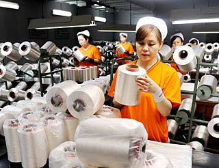 | 近年來,河北省保定天鵝化纖集團(tuán)有限公司把技術(shù)創(chuàng)新作為老國企節(jié)能減排突破口,從細(xì)微技術(shù)環(huán)節(jié)中尋找節(jié)能減排切入點(diǎn),在挑戰(zhàn)國外技術(shù)和設(shè)備中開辟節(jié)能減排新路徑,取得了良好的經(jīng)濟(jì)效益。圖為工人在保定天鵝化纖集團(tuán)有限公司的質(zhì)檢車間工作。新華社資料照片 | “轉(zhuǎn)軌”已成為近年來中國經(jīng)濟(jì)社會發(fā)展的主題詞,為推動經(jīng)濟(jì)發(fā)展方式由粗放型向集約型轉(zhuǎn)軌中央進(jìn)行了精心設(shè)計和布局,并出臺了一系列政策進(jìn)行適時推動。如何處理好經(jīng)濟(jì)增長速度與轉(zhuǎn)變經(jīng)濟(jì)發(fā)展方式、提高經(jīng)濟(jì)增長質(zhì)量的關(guān)系既是一個多年前已提出的課題,也是當(dāng)前國際金融危機(jī)背景下值得重視和深入研究的課題。 今年的政府工作報告明確提出,加快轉(zhuǎn)變發(fā)展方式,大力推進(jìn)經(jīng)濟(jì)結(jié)構(gòu)戰(zhàn)略性調(diào)整。這再次吹響了經(jīng)濟(jì)發(fā)展由“粗放型”向“集約型”轉(zhuǎn)變的號角。