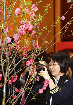 上海市民在欣賞桃花。本報(bào)記者 裴鑫
