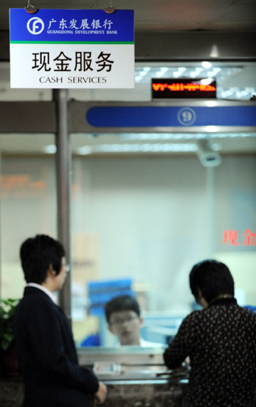 廣東省統計局的最新統計資料顯示,截至2009年2月末,廣東省居民儲蓄存款余額達到29572.20億元,比上年同期增長25.7%,逼近3萬億元的關口。圖為客戶在廣東發(fā)展銀行總行營業(yè)大廳辦理現金業(yè)務。本報記者