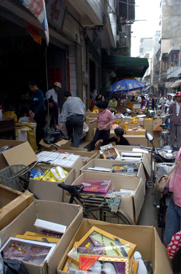 ?谑姓駯|街道路兩旁布滿了兜售祭祀用品的商店。小到紙錢、元寶、金條,大到汽車、飛機(jī)、別墅,品種繁多。掃墓祭祀時(shí)這些紙制品不僅污染環(huán)境,還極易形成山火隱患。本報(bào)記者:郭程