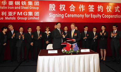 湖南華菱鋼鐵集團和澳大利亞FMG公司22日雙雙證實,前者對后者總額達12.718億澳元的投資案,在此前獲澳大利亞政府批準后,也已于日前獲中國國家發(fā)改委批準。 FMG公司22日發(fā)布公告稱,中國國家發(fā)改委正式批文已經下達,目前實質性審批障礙已經掃清。本報記者在22日對湖南華菱鋼鐵集團董事長李效偉的采訪中也了解到,華菱與澳大利亞第三大礦業(yè)公司FMG于今年2月24日在香港簽署的股權認購協議,已于日前獲得國家發(fā)改委批準。李效偉表示,華菱與FMG的成功合作是華菱國際化發(fā)展戰(zhàn)略的深度拓展。 此前因為澳大利亞政府用來“保護”企業(yè)獨立運營所附加的三個條件,曾有消息傳出國家發(fā)改委將可能否決此次交易。22日華菱和FMG的表態(tài)證明,這只是虛驚一場。一位接近交易的人士向媒體強調,澳大利亞政府在審批時所附加的三個條件,是依據澳大利亞2001年公司法案(Corporations