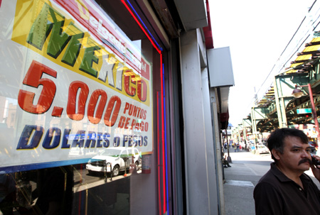 4月28日,在美國(guó)紐約,一名男子在一家旅行社窗戶上張貼的“赴墨西哥旅游”的宣傳海報(bào)旁駐足。美國(guó)疾病控制和預(yù)防中心代理主任理查德·貝塞爾28日說(shuō),美國(guó)確診的豬流感患者人數(shù)已上升至64人。美國(guó)政府正在考慮是否發(fā)布對(duì)墨西哥的旅游禁令。貝塞爾建議美國(guó)民眾如無(wú)必要盡量不要前往墨西哥一些疫情嚴(yán)重地區(qū)。新華社記者:劉欣