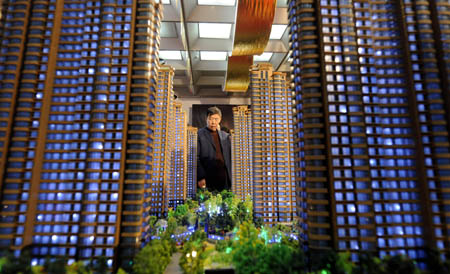市民在房展會上參觀一個新開盤的樓盤模型!⌒氯A社記者 燕雁 攝 |