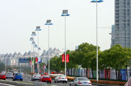 近日,蘇州工業(yè)園區(qū)星港街完成改造,道路兩側(cè)244套太陽(yáng)能路燈投入使用,從而成為蘇州市區(qū)首條綠色環(huán)保的全太陽(yáng)能路燈街。新華社發(fā)(王建中攝) |