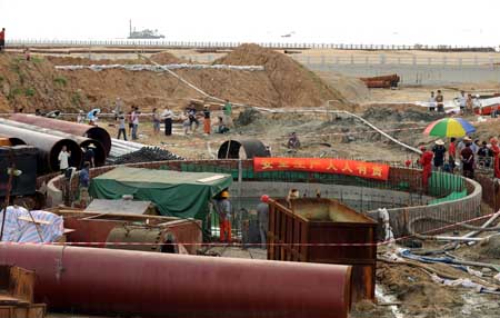 自6月10日19時45分許?谑邪咨抽T污水處理廠擴建項目排海工程透水事故發(fā)生以來,5名失蹤工人已被封閉在排海管中長達(dá)20小時,生存的希望幾乎為零。目前事故處置工作重心已由搜救轉(zhuǎn)為搜尋失蹤者。這是搜救工作現(xiàn)場。