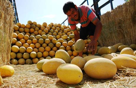 近日,新疆吐魯番迎來(lái)哈密瓜收獲季節(jié),金皇后、西洲蜜等20多個(gè)品種的精品哈密瓜大量成熟上市,產(chǎn)量和銷(xiāo)售價(jià)格均好于往年。近年來(lái),吐魯番走上種植精品哈密瓜之路,成為全國(guó)綠色食品原料(哈密瓜)標(biāo)準(zhǔn)化基地之一。2009年,吐魯番優(yōu)質(zhì)哈密瓜種植面積已發(fā)展到8萬(wàn)多畝,其中精品哈密瓜種植面積達(dá)三萬(wàn)多畝。新華社發(fā)