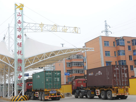 6月17日,在位于山西省臨汾市的山西方略保稅物流中心,載有進(jìn)出口貨物的車輛正在通關(guān)。6月16日,山西方略保稅物流中心通過國(guó)務(wù)院聯(lián)合驗(yàn)收組驗(yàn)收。這是山西省首家保稅物流中心,也是經(jīng)國(guó)務(wù)院授權(quán)由海關(guān)總署、財(cái)政部、國(guó)家稅務(wù)總局、國(guó)家外匯管理局等四部委聯(lián)合批準(zhǔn)的首批17家B型保稅物流中心之一。新華社發(fā)