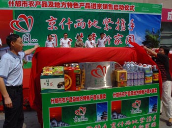 當(dāng)日,“什邡市農(nóng)產(chǎn)品及地方特色產(chǎn)品進(jìn)京”啟動儀式在北京舉行,首批到京銷售的產(chǎn)品包括10個系列50多個品種,價值1000多萬元。這項(xiàng)活動是北京援建地震災(zāi)區(qū)的一項(xiàng)新舉措,既可以支持什邡全面恢復(fù)生產(chǎn)、增加農(nóng)民收入,也為北京市民提供了優(yōu)質(zhì)的商品。