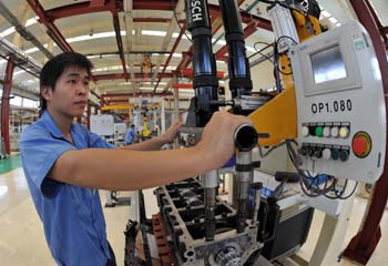 在廣西玉林市玉柴集團(tuán)總裝車間,工人正在車間忙碌。 受國際金融危機(jī)影響,作為全球最大獨(dú)立柴油發(fā)動機(jī)生產(chǎn)基地的玉柴集團(tuán)苦練內(nèi)功提升實(shí)力,以構(gòu)筑市場培育新的增長點(diǎn),內(nèi)外兼修,成功實(shí)現(xiàn)“轉(zhuǎn)危為機(jī)”。今年1月至7月,玉柴集團(tuán)累計(jì)實(shí)現(xiàn)銷售收入149.76億元,同比上升8.36%;累計(jì)實(shí)現(xiàn)柴油機(jī)銷量41.1萬臺,同比增長5.68%。 |