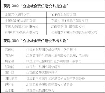 由億萬網(wǎng)民通過新華網(wǎng)獨(dú)家投票產(chǎn)生的2009“企業(yè)社會(huì)責(zé)任建設(shè)杰出企業(yè)”和“杰出人物”在此次論壇上予以公布,中國(guó)外商投資企業(yè)協(xié)會(huì)會(huì)長(zhǎng)、原對(duì)外貿(mào)易經(jīng)濟(jì)合作部部長(zhǎng)石廣生和原新華通訊社副社長(zhǎng)何東君為獲獎(jiǎng)企業(yè)和個(gè)人頒發(fā)了“雙杰”獎(jiǎng)項(xiàng)。