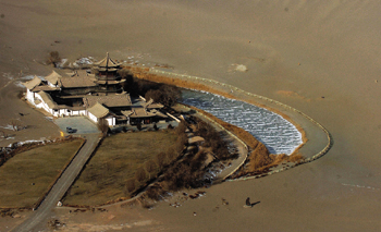 俯瞰聞名海內(nèi)外的敦煌鳴沙山月牙泉。本報記者 韓傳號 攝 |