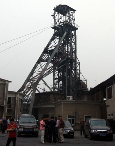 10月8日拍攝的事故現(xiàn)場(chǎng)。當(dāng)日9時(shí)15分許,湖南省冷水江市錫礦山閃星銻業(yè)有限責(zé)任公司南礦2直井運(yùn)輸?shù)V工的罐籠因剎車失靈導(dǎo)致飛車,2個(gè)載有31名礦工的罐籠墜落。截至16時(shí),事故已造成26人死亡,5人受傷。目前,事故原因正在調(diào)查中。新華社發(fā)