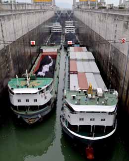 試驗性蓄水以來三峽船閘運行順利。新華記者 杜華舉
