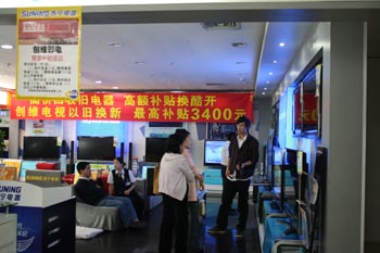 截至11月4日,上海市共回收廢舊家電47.6萬(wàn)臺(tái),銷售家電42.6萬(wàn)臺(tái),銷售金額17.6億元,補(bǔ)貼額達(dá)1.33億元。在回收廢舊家電品類中,彩電最多,占比超過79%。家電連鎖企業(yè)上海永樂電器、上海蘇寧電器、上海國(guó)美電器合計(jì)回收廢舊家電占比達(dá)87%,合計(jì)銷售新家電無(wú)論從銷售量還是銷售金額上占比都超過85%。據(jù)上海永樂統(tǒng)計(jì),8月15日實(shí)施家電以舊換新政策以來(lái),彩電銷售量同比增長(zhǎng)近一倍,考慮到去年北京奧運(yùn)會(huì)期間彩電銷售下滑的影響,同比增長(zhǎng)也應(yīng)超過50%。上海蘇寧電器也表示,家電以舊換新政策對(duì)彩電的銷售拉動(dòng)作用較大,期間蘇寧彩電銷售額同比增長(zhǎng)45%。