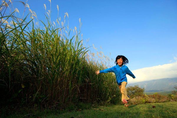 出生、成長在富士山下的日本小姑娘悠香在富士山下快樂地玩耍。新華社記者 任正來 攝 |