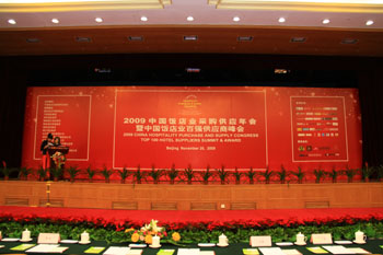 圖為日前在北京舉行的2009中國(guó)飯店業(yè)采購(gòu)供應(yīng)年會(huì)會(huì)場(chǎng)。張啟欣