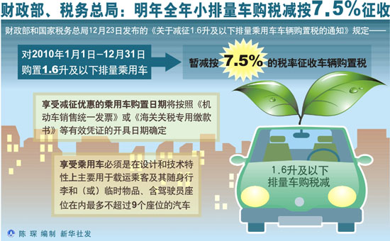 兩部委:明年全年小排量車購稅減按7.5%征收