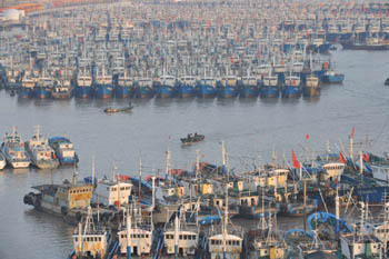 1月12日,舟山沈家門漁港停滿了回港避風(fēng)的漁船。當(dāng)日,舟山市氣象臺(tái)發(fā)布大風(fēng)橙色預(yù)警信號(hào),受冷空氣影響,舟山近外海漁場(chǎng)風(fēng)力9- 10級(jí),陣風(fēng)11級(jí),13日- 14日最低氣溫零下2到零下4攝氏度左右。