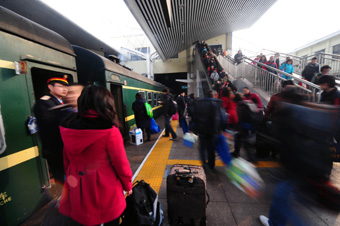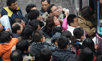 又是一年“春運(yùn)潮”。 2010年1月20日離2010年春運(yùn)還有10天之時(shí),全國(guó)各地火車站就已提前迎來(lái)了以學(xué)生和農(nóng)民工及探親流為主的客流小高峰。臨近春節(jié),返鄉(xiāng)的人越來(lái)越多,記者也在進(jìn)入春運(yùn)的第13天——2月11日,親身體驗(yàn)了今年的“春運(yùn)潮”,總體感受就兩個(gè)字——“人多”。 在北京建國(guó)門(mén)地鐵站下車,從1號(hào)線轉(zhuǎn)乘2號(hào)線,即使不知道乘車的方向,根據(jù)等車兩邊的行人數(shù)量便可以判斷:人多、多數(shù)人手提行李的一面一定是去北京站方向的。到了北京站,一出地鐵就能聽(tīng)見(jiàn)工作人員的喊聲:“去火車站的C口出!”。其實(shí)無(wú)需刻意尋找出口,跟著人群走準(zhǔn)沒(méi)錯(cuò)。出站口的電梯連續(xù)不斷地滿載,終于在當(dāng)天下午兩點(diǎn)半罷工了——行人只能走樓梯。 售票處就更不用說(shuō)了。車站對(duì)外廣播間或有退票公告,通知需要車票的乘客到售票窗口購(gòu)買。因?yàn)槭窍挛,售票窗口前的?duì)伍長(zhǎng)不過(guò)5、6人,反而是退票處排起了長(zhǎng)隊(duì)。為了防止混亂,車站請(qǐng)專門(mén)管理員維持秩序,退票者需持車票才能進(jìn)入設(shè)有圍欄的退票專區(qū)。不少還沒(méi)買到票的人在圍欄外張望,不時(shí)有人喊:“有沒(méi)有沈陽(yáng)的票”“有沒(méi)有退合肥的票的”…… 伴隨著人流增多的,是安保人員。記者統(tǒng)計(jì)了一下火車站內(nèi)的警車數(shù)量——包括一輛大型特警指揮車在內(nèi)共21輛。 火車票一票難求,春運(yùn)高峰期機(jī)票的銷售也相當(dāng)火爆,有的熱門(mén)航線早就買不到票了。記者從游易旅行網(wǎng)了解到,今年春運(yùn)的機(jī)票銷售和往年一樣火爆,即使是和去年剛開(kāi)通的高鐵相撞的航線也照樣銷售旺盛,而且春運(yùn)高峰期的火車票不易買,很多人還是要選航空。 據(jù)悉,目前返鄉(xiāng)航線的機(jī)票最為熱銷,北京至武漢、長(zhǎng)沙、南昌、長(zhǎng)春、沈陽(yáng)等線路在2月9號(hào)至12日的機(jī)票非常緊俏,全價(jià)的經(jīng)濟(jì)艙都已經(jīng)預(yù)訂不到位置,少數(shù)時(shí)段不好的航班還有極少量的經(jīng)濟(jì)艙座位或頭等艙座位,部分日期只剩下一兩趟航班有極少量的位置,不少航線10號(hào)當(dāng)天的機(jī)票早早銷售一空。 2010年的春運(yùn)從1月30日起至3月10日,為期40天,其中節(jié)前15天,節(jié)后25天。