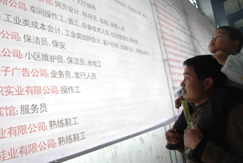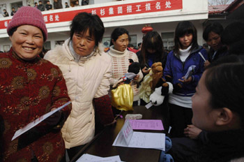 2010年春節(jié)過后,天津市100多家用人單位招聘現(xiàn)場提供了2萬多個崗位,而進場求職的農(nóng)民工僅有近萬人次。新華社記者 劉海峰/攝 |