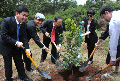由聯(lián)合國環(huán)境規(guī)劃署和新華社非洲總分社共同主辦的“明月行動(dòng)·走進(jìn)非洲”大型環(huán)保公益活動(dòng)29日在肯尼亞首都內(nèi)羅畢正式開幕,本次活動(dòng)旨在研討世界環(huán)境保護(hù)和可持續(xù)發(fā)展進(jìn)程中面臨的諸多問題,與會(huì)人士還將資助聯(lián)合國立項(xiàng)幫扶的非洲學(xué)校及到肯尼亞貧困地區(qū)進(jìn)行環(huán)保宣傳。 聯(lián)合國副秘書長(zhǎng)、聯(lián)合國環(huán)境規(guī)劃署執(zhí)行主任阿希姆·施泰納在會(huì)上說,環(huán)境署很榮幸與中方,特別是中國媒體共同合作舉辦此次環(huán)保公益活動(dòng),以期使社會(huì)各界可以有機(jī)會(huì)共同交流環(huán)境保護(hù)及可持續(xù)發(fā)展的經(jīng)驗(yàn)。 施泰納表示,環(huán)境署感謝中國政府和企業(yè)多年來為幫助非洲開發(fā)資源、提高民眾生活水平方面做出的努力。中國總理溫家寶在去年召開的中非合作論壇第四屆部長(zhǎng)級(jí)會(huì)議上再次把幫助非洲發(fā)展綠色經(jīng)濟(jì)、實(shí)現(xiàn)可持續(xù)發(fā)展作為中非合作首要項(xiàng)目。非洲擁有巨大的資源開發(fā)潛力,環(huán)境署希望中國能夠幫助非洲實(shí)現(xiàn)互利互惠的資源開發(fā)模式,更好地利用當(dāng)?shù)乜稍偕Y源。 肯尼亞副總統(tǒng)穆西約卡在會(huì)上說,肯尼亞與中國多年來一直保持著各領(lǐng)域良好的合作關(guān)系。他認(rèn)為,肯尼亞是中國企業(yè)走進(jìn)非洲綠色經(jīng)濟(jì)的最好落腳點(diǎn),自上世紀(jì)90年代,已經(jīng)有很多中國企業(yè)為非洲及肯尼亞發(fā)展做出了貢獻(xiàn),“中國一直是非洲的好朋友”,肯尼亞歡迎與中國在建設(shè)綠色經(jīng)濟(jì)、提升旅游合作等各領(lǐng)域進(jìn)一步拓寬往來,希望與中國一道為實(shí)現(xiàn)更好世界共同努力。 會(huì)上,活動(dòng)主辦方代表新華社總經(jīng)理室副總經(jīng)理程小玲向聯(lián)合國環(huán)境規(guī)劃署捐贈(zèng)一幅小學(xué)生手繪環(huán)保畫卷,這幅畫卷由北京芳草地小學(xué)40余名來自世界各地的學(xué)生共同繪制,旨在幫助推進(jìn)和宣傳全球共同支持環(huán)境保護(hù)和可持續(xù)發(fā)展的口號(hào)。隨后,與會(huì)代表在聯(lián)合國環(huán)境規(guī)劃署的植樹園攜手共植明月環(huán)保樹,為每年植樹70億棵的目標(biāo)作出自己的貢獻(xiàn)。 當(dāng)天,新華社非洲總分社社長(zhǎng)王朝文、聯(lián)合國環(huán)境規(guī)劃署官員、環(huán)保藝人周迅和蘇有朋以及中國企業(yè)和在肯華人華僑代表等近百人共同與會(huì)。由聯(lián)合國環(huán)境規(guī)劃署和新華社新聞研究所等機(jī)構(gòu)及相關(guān)媒體聯(lián)合發(fā)起的2009年全球十大環(huán)保新聞和中國十大環(huán)保新聞評(píng)選活動(dòng)也將于當(dāng)天揭曉。