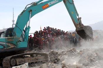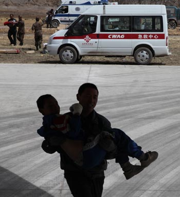 玉樹地震的救援活動(dòng)進(jìn)入第6天,新華社記者從青海玉樹抗震救災(zāi)指揮部獲悉,截至4月18日晚上,玉樹地震遇難人員達(dá)1706人,失蹤256人,受傷12128人,其中重傷1424人。 仍有不斷的人馬奔赴災(zāi)區(qū),找尋生命的痕跡——只要有生命的呼喚,救援,便永不放棄!而對(duì)于這場(chǎng)災(zāi)難的幸存者和生還者來說,痛苦需要掩埋,家園還要重建,生活仍將繼續(xù)。 讓我們?yōu)橛駱淦砀!駱洳坏,玉樹加油?/FONT>