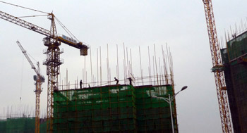 4月底5月初,受國家房貸新政及央行上調(diào)存款準備金率等一系列政策影響,湖南省會長沙部分樓盤出現(xiàn)小幅價格回調(diào),一些業(yè)內(nèi)人士分析認為,長沙房價暗降將會是今后一兩年內(nèi)的趨勢,而剛剛結束的長株潭房地產(chǎn)交易會上“看多買少”的情況似乎也證實了這一點,但就長沙整體房價形勢的走向,大多市民仍持觀望態(tài)度,今后一段時期內(nèi),房價問題將越發(fā)敏感。圖為工人們在一處正在建設中的樓盤上施工。新華社記者 趙眾志/攝 |