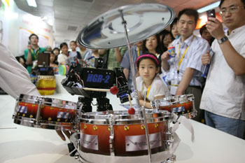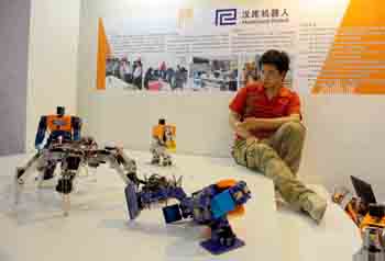 在北京舉行的第十屆科博會上,眾多最新科技成果及產(chǎn)品令參觀者大開眼界,特別是機器人的各種模仿表演吸引了許多小朋友的目光。新華社發(fā)(陳曉根/攝) |
