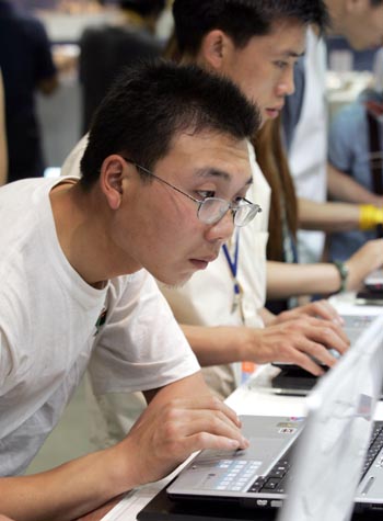 在第八屆北京科博會上,參觀者現(xiàn)場試用新型筆記本電腦。資料照片 |