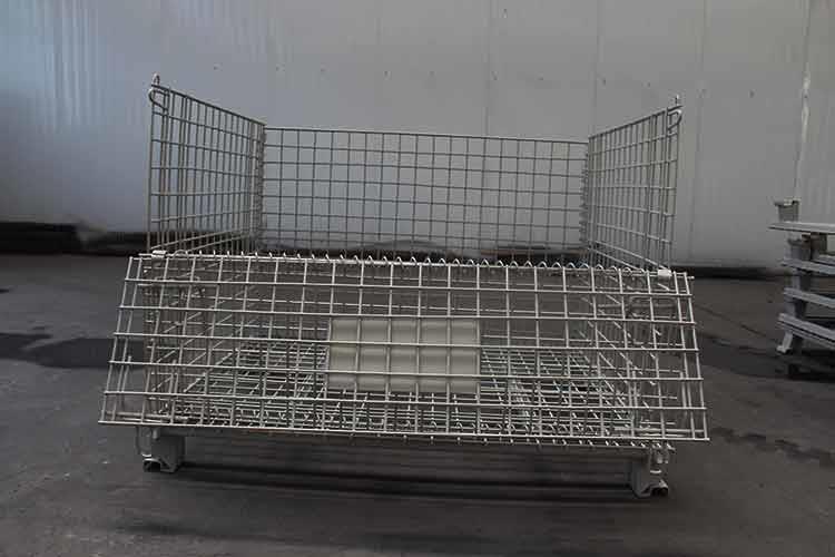 移動式美固籠外形輕巧,籠體除底框外都有鐵絲碰焊成的網(wǎng)片組合而成;網(wǎng)片與網(wǎng)片、網(wǎng)片與底框靠小連接件連接,可活動。且前后面可打開,在堆垛后能取物,堆垛時承重在側(cè)面的網(wǎng)片上。該移動式美固籠已完全具備可堆垛性、可折疊性及可搬運(yùn)性,日益成為物流流通的一種重要物流容器。