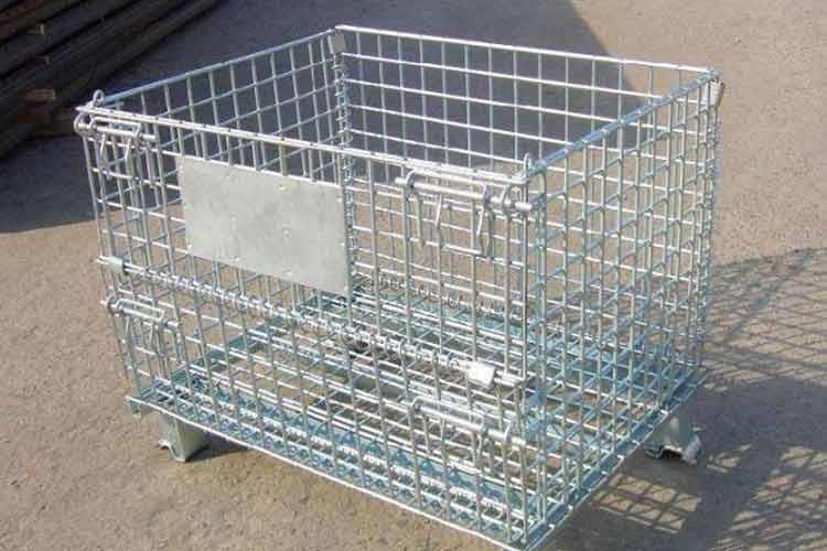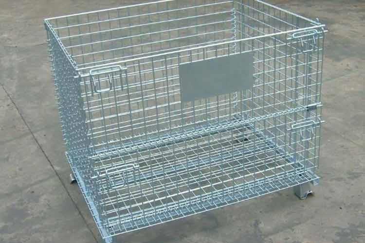 主要原材料是高線(xiàn)拉成的鋼絲,一般絲徑是5mm,6mm,6.4mm。網(wǎng)片焊接的網(wǎng)目間距一般為50×100,100×100,50×50。倉(cāng)儲(chǔ)籠底部采用U型鋼焊接而成,U型鋼是冷軋帶鋼軋機(jī)軋制而成,底部四角采用沖壓件一次沖制而成。鐵絲籠采用Q195高線(xiàn)作為原材料,經(jīng)冷拔成型材。再通過(guò)碰焊形成半成品網(wǎng)片。在制作成網(wǎng)片后,可采用鍍鋅或噴塑進(jìn)行表面處理(鐵絲籠大多數(shù)采用鍍鋅處理),表面處理完畢后就可以進(jìn)行組裝,即可制作成成品。