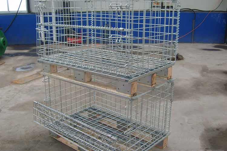 木托倉(cāng)儲(chǔ)籠的主要材料為低碳鐵絲、槽鋼、熱軋鋼板等。該倉(cāng)儲(chǔ)籠的外形非常的輕巧,籠體除底框外皆有鐵絲碰焊成的網(wǎng)片組合而成,網(wǎng)片與網(wǎng)片、網(wǎng)片與底框靠小連接件連接,可活動(dòng)。在木托倉(cāng)儲(chǔ)籠空籠時(shí)可折疊存放,充分利用空間。同時(shí)倉(cāng)儲(chǔ)籠前面可打開(kāi),在堆垛后能取物,堆垛時(shí)承重在側(cè)面的網(wǎng)片上。