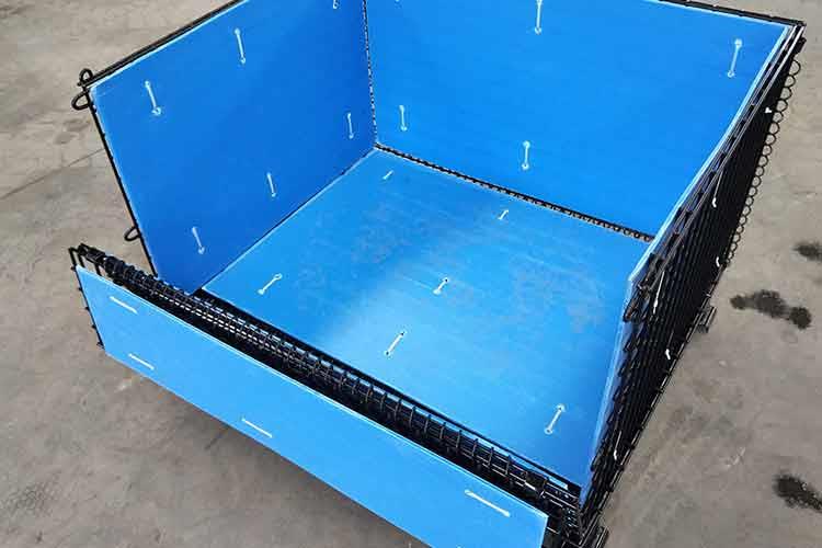 中空板倉(cāng)儲(chǔ)籠主要部件分網(wǎng)片制造和底盤(pán)制造。??