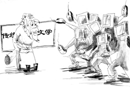 不過,他也強調(diào)了在“網(wǎng)絡盛宴”下隱藏的危險——“網(wǎng)絡小說真正的危險在于,它使作家們?nèi)菀诐M足于表面的點擊率高、受歡迎,而且抵制不了這種誘惑,追求這些東西。比如一些網(wǎng)絡作家出名后,就以作品可讀性強為惟一標準,這是很致命的。” |