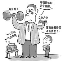 中國(guó)經(jīng)濟(jì)已經(jīng)持續(xù)20年高速增長(zhǎng),但是文化產(chǎn)業(yè)仍然是低位徘徊。數(shù)據(jù)顯示,2004年,中國(guó)文化產(chǎn)業(yè)實(shí)現(xiàn)增加值3440億元,僅占GDP的2.15%;從業(yè)人員996萬(wàn)人,僅占中國(guó)全部從業(yè)人員的1.3%。目前中國(guó)上萬(wàn)億美元的外貿(mào)額中,出口已經(jīng)過(guò)半,但其中的文化產(chǎn)品出口不到1%。