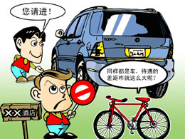 目前賓館酒店不讓自行車進,其實在全國是一個普遍的現象,賓館、酒店對自行車的歧視,說到底是社會嫌貧愛富心理的反映,自行車被認為代表貧窮,這種觀念根深蒂固后,才會形成這樣的“規(guī)矩”,才會有即使“兩會”參會委員,也可讓一個保安拒之門外的咄咄怪事。