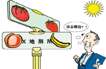 近日河南對全省城市公共標志做了一次調查,結果鄭州的公共標志最差最亂,公廁標志的不合格率高達60%以上。有公廁男廁門上是個“香蕉”的標志,女廁門上是“壽桃”的標志,常有顧客猶豫不敢進。(相關報道見14版) 公共標志不是藝術創(chuàng)作,原因很簡單,旨在為民眾提供生活便利引導的公共標志,應該也只能以便民為前提。如果說“富有創(chuàng)意”的廁所名稱,會引發(fā)如廁者茫然無措的尷尬的話,那么,交通指示牌不規(guī)范,則會呈現(xiàn)更嚴重的癥狀——司機被罰款、路人迷路事小,公共交通安全事大。況且,公共標志的問題,不僅僅存在于如廁和交通兩個方面,涉及公共生活的所有細節(jié)。