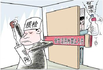 四川尹先生帶了兩瓶康師傅礦泉水先后到四川省人民醫(yī)院和成都市第二醫(yī)院分別進(jìn)行PH值檢測,其PH值僅為5.8-6.2,根本達(dá)不到《生活飲用水衛(wèi)生標(biāo)準(zhǔn)》規(guī)定的6.5-8.5。重慶市質(zhì)監(jiān)局相關(guān)負(fù)責(zé)人稱,國家頒布的《生活飲用水衛(wèi)生標(biāo)準(zhǔn)》中僅涉及了生活飲用水的PH值,礦泉水不算“生活飲用水”(10月12日《重慶時報》)。