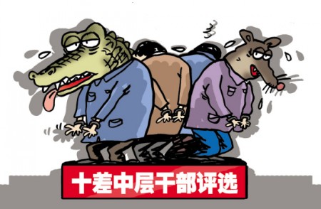 《齊魯晚報》報道,山東濟寧評選“十佳十差”中層干部,“第一次搞類似的評選活動,壓力可想而知,但市領(lǐng)導決心很大”。評選出的“十差”,包括城市建設(shè)綜合開發(fā)中心原主任宋偉等8人,都因經(jīng)濟問題已進入司法程序。另有1人被“雙開”,1人受黨內(nèi)警告處分。 進入了司法程序,幾乎是犯罪嫌疑人了,最輕的也是被“雙開”、受黨內(nèi)警告處分。這“十差”確實真夠差的,但選這幾個政治上的“死老虎”,談何“壓力”?何需“決心”?按一般原則,這10人應(yīng)該已經(jīng)被清除出中層干部的隊伍了,但一搞“運動”,又重新掛上了“中層干部”頭銜,這短暫的回光返照,有似于街頭的耍猴,猴子心中固然不爽,牽繩子的耍猴人也未見得高明。又打雷又刮風,憋了半天,轟隆隆地下的卻是這樣一顆不倫不類的蛋。 近來各地都興選這選那,樣子是開明的,但只有名實相符方能大好。