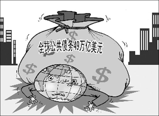 2008年全球的公共債務總額占全球國內(nèi)生產(chǎn)總值的63%,為10年多來最低水平。但在危機環(huán)境下,今明兩年各國公債大增,穆迪公司最新發(fā)布的一份報告估計,2010年全球公共債務總額預計將達49萬多億美元,占比將達80%。