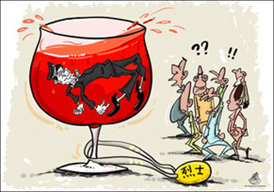 新聞背景:深圳市寶安區(qū)西鄉(xiāng)交警中隊警長陳錄生受邀與某村領(lǐng)導(dǎo)應(yīng)酬,席間喝了大量洋酒醉酒而亡,竟然被上報因公犧牲,甚至還要被評為烈士。(《南方都市報》12月14日)