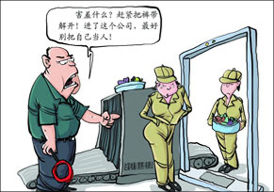 “8000位打工妹,是誰在光天化日之下脫去你的褲腰帶?”近日,網(wǎng)友報(bào)料:一家在華外企,下班時(shí)居然要求女工在眾目睽睽下解開褲腰帶接受安檢。(12月23日《南方日?qǐng)?bào)》)