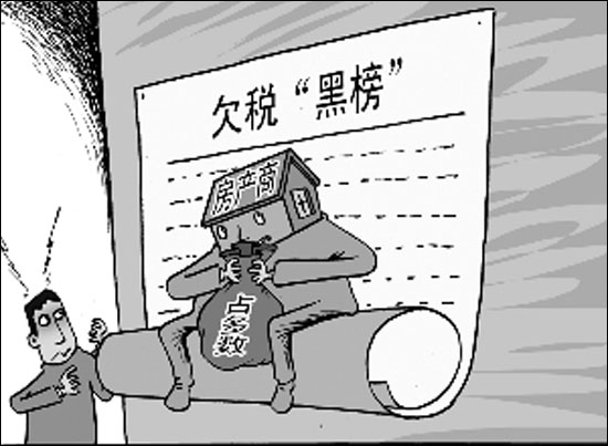 北京市地稅局日前發(fā)布欠稅“黑榜”,35家上榜企業(yè)每家累計欠繳800萬元以上。房地產(chǎn)及相關(guān)行業(yè)公司占比約為八成,其中北京中地房地產(chǎn)公司欠稅高達1.44億元。再說房地產(chǎn)開發(fā)周期長、前期預(yù)算不準等理由,是不是太牽強了些?