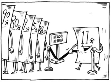 《江淮晨報(bào)》報(bào)道,巢湖市直部分事業(yè)單位公開(kāi)招聘工作人員的面試名單被掛上網(wǎng)后,引起質(zhì)疑。原因是報(bào)考特教學(xué)校的一考生,職業(yè)能力測(cè)試成績(jī)(滿分100分)只有11分,報(bào)考中心血站的一考生職業(yè)能力測(cè)試22分,兩人竟然進(jìn)入面試。如此低的職業(yè)能力,別說(shuō)希求其在崗位上不“胡作非為”,能做到“濫竽充數(shù)”就算謝天謝地了。