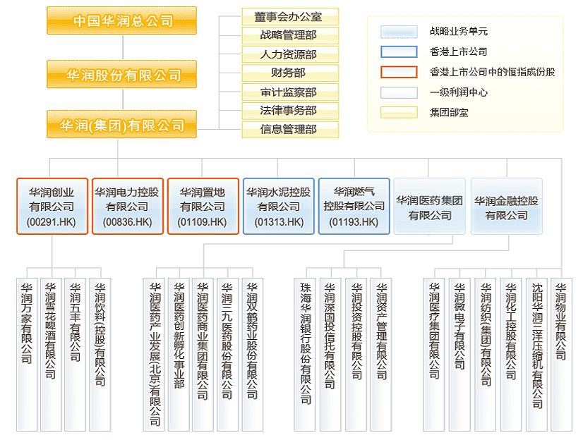 華潤(rùn)集團(tuán)公司構(gòu)架