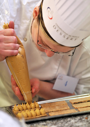 文華東方海德公園酒店(MandarinOrientalHydePark)位于倫敦市中心著名的海德公園旁,百年的歷史,英國傳統(tǒng)家居的裝修風(fēng)格和地道的菜品成為他們的招牌。酒店餐廳提供的傳統(tǒng)英式下午茶也隨即成為來到這里的客人體驗(yàn)英國傳統(tǒng)文化的絕好選擇。 英式下午茶所使用的茶以“紅茶中的香檳”——大吉嶺紅茶為首選,而發(fā)展至今以各種茶葉混合制成的伯爵茶也成為顧客常常選用的茶品。英國人比較喜愛喝的茶品有三種:口味較重的混合茶是搭配比較甜潤的糕點(diǎn);而味道很好的錫蘭茶則適合與黃油餅干或重口味的三明治一起食用;產(chǎn)自印度東北部的大吉嶺茶清淡可口,有果味與花茶的特征,很適合與有代表性的下午茶糕點(diǎn)——海綿蛋糕搭配。 英式下午茶的甜品種類繁多,而最著名的要數(shù)司康餅(Scone),文華東方海德公園酒店的糕點(diǎn)主廚Graham先生就帶我們到廚房去參觀了司康餅的出爐過程。 司康餅,是蘇格蘭人的快速面包(QuickBread),它的名字是由一塊具有悠久歷史的、被稱為司康之石(StoneofScone)的地方得來的,那里正是蘇格蘭皇室的加冕之地。傳統(tǒng)的司康餅是作成三角形的,以燕麥為主要材料,將面團(tuán)放在煎餅用的淺鍋中烘烤。而流傳到現(xiàn)在,面粉成為了其主材,形狀也不再是一成不變的三角形,可以作成圓形、方形等各式形狀,還可加入葡萄干、果仁等一起烘焙。司康餅的制作,最關(guān)鍵是發(fā)酵過程和烘烤過程。好的司康餅看起來外表很硬,感覺很甜膩,吃起來卻無比松軟,搭配黃油和果醬,清爽可口。 司康餅的吃法也頗為講究,一種吃法是直接吃,另一種吃法則是與草莓醬或濃縮奶油一起食用“司康餅一定要趁熱食用,剛從烤箱端出來的,用刀子切開,涂抹上奶油和草莓醬,熱氣讓奶油微微融化,一口咬下去,果醬的甜潤融合著奶油的馨香,配上一口紅茶,與溫軟的司康餅在口中融化,味蕾在那一刻即會(huì)得到充分的滿足!盙raham說。