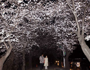 提起賞櫻,人們總會(huì)想到日本。其實(shí),櫻花絕非日本獨(dú)有,在韓國(guó),櫻花的數(shù)量也多得令人嘆為觀止。每年3月15日至4月15日,是日本的櫻花節(jié),而韓國(guó)的櫻花開放時(shí)節(jié)稍晚,大約在4月初,卻是春天芳菲的主角。 據(jù)說,日本的櫻花是從韓國(guó)傳過去的。在東渡日本之前,韓國(guó)櫻花的數(shù)量不多。但自從櫻花被日本定為國(guó)花,且因?yàn)?0年的被侵略歷史,日本人的大量種植才形成了韓國(guó)櫻花遍地的景象。如今,漫步在首爾,到處可見大片櫻花盛開,山野、街邊、公園,白色的櫻花不嬌艷卻高雅出塵,小而細(xì)密,不知不覺間將整個(gè)城市裝扮成粉嫩的夢(mèng)幻世界。櫻花的生命短暫,花期只有七天左右,也因此而格外珍貴。要抓住這稍縱即逝的美麗,就必須珍惜機(jī)會(huì)。 在首爾,不到汝矣島,就不算賞了櫻花。汝矣島櫻花路——輪中路,位于首爾市永登浦區(qū)汝矣島——這一首爾和韓國(guó)的金融中心,交通便利,充滿現(xiàn)代氣息。附近就是都市化象征的首爾代表性建筑——63大廈。然而,就是在這代表著現(xiàn)代都市發(fā)達(dá)經(jīng)濟(jì)的地方,卻有一條洋溢著浪漫、美好氛圍的“櫻花大道”。這條大道長(zhǎng)達(dá)5.7公里,兩邊種植著1400多株櫻花,花開時(shí)枝繁葉茂,在空中籠成一條長(zhǎng)長(zhǎng)的圓形隧道,極其壯觀華麗。每年4月櫻花盛開之時(shí),這里都會(huì)舉行“櫻花節(jié)”。節(jié)日期間,車輛禁行,平日里常見的車水馬龍、喧嘩嘈雜消失了,取而代之的是熱鬧的歡樂人群和各式各樣的慶典節(jié)目。每天從早晨9點(diǎn)開始,持續(xù)開展各種慶;顒(dòng)。 白天,走在繁茂的“櫻花隧道”里,你可以一邊觀賞櫻花飄落,一邊欣賞各種民俗表演——個(gè)性化的藝術(shù)公演、有創(chuàng)意的手工藝品展,一邊品嘗各種美味的小吃?粗磉呅『⒆觽儦g呼雀躍地游戲,和朋友、親人悠閑地散步,享受春日的暖陽(yáng),真是愜意無比。 過了晚上6點(diǎn)半,櫻花大道華燈燃起,五彩繽紛,將整條街渲染成神秘的童話世界,又是一番截然不同的情景。此時(shí),和戀人一起,牽手漫步花叢之間,竊竊私語(yǔ),更是浪漫得無可復(fù)加。 去櫻花大道很方便,從汝矣島國(guó)會(huì)議事堂出來,就是櫻花大道的入口。首先映入眼簾的,是門口極其鮮艷的大花盆,一株株五彩的春花開得正歡,爭(zhēng)奇斗艷,紅色和橙色的郁金香、姹紫嫣紅的杜鵑、黃色的百合……那是一年一度的“春花展”。游人們爭(zhēng)相與花留影,女孩子們穿著漂亮的短裙,與花比美,堪稱一景。不過別急,這只是“拋磚引玉”。走過花盆,可見人行道上整整一排富有個(gè)性的手工藝品,都是用廢品制成的。易拉罐、塑料瓶、廢舊燈泡、玻璃瓶……一無是處的垃圾竟然搖身一變成了藝術(shù)品,這讓人們?cè)谫潎@藝術(shù)家們的巧手之余,也不得不感嘆韓國(guó)人民的環(huán)保意識(shí)。 沿著道路往下走,你便置身于繁茂的櫻花隧道了。和起初沖擊眼球的艷麗春花形成鮮明對(duì)比的是,白色的櫻花不張揚(yáng)、不高調(diào),只是自顧自地綻放,成千上萬(wàn)朵淡雅的櫻花密密麻麻、相互簇?fù),如云如雪,迎向天空,一下子隔離開了喧囂的都市,構(gòu)筑出一個(gè)“世外桃源”來。置身其間,任誰(shuí)都會(huì)立即拋卻煩惱,感受到難得的平和心境。一路走去,街頭的各種公演,不喧嘩,只是給安靜的鮮花世界增添了不少情趣。路邊,還有不少藝人在作畫,你可以停下來,感受一番自己入畫、入景的情致。 到了晚上,位于漢江邊的櫻花大道,更加美得如夢(mèng)如幻。首爾的夜景本就輝煌燦爛,有“小香港”之稱,而櫻花點(diǎn)綴下的汝矣島,既不缺乏都市叢林的星光點(diǎn)點(diǎn),又有著都市里難得一見的自然之夢(mèng)幻。原本粉嫩的白色櫻花,在燈光的照耀下不斷變幻色彩,艷紅、亮黃、嫩綠……慢慢踱步其間,恍惚間,你會(huì)仿佛進(jìn)入了夢(mèng)游般的奇幻狀態(tài),亦真亦幻,閉上眼睛,你似乎可以感受到無數(shù)小精靈在你身邊飛舞,引領(lǐng)你進(jìn)入神奇世界……無數(shù)戀人們?cè)跈鸦湎掠H密相擁,漢江在一邊靜靜地流淌……對(duì)他們來說,此刻,世界只剩下兩人——我和你。 來首爾賞櫻花,汝矣島的“櫻花隧道”,一定會(huì)帶給你非同一般的美好回憶。