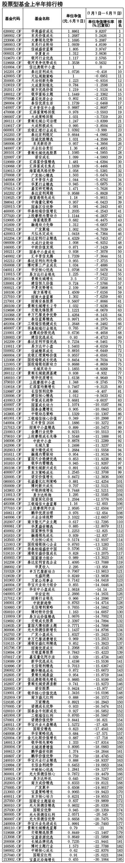 股票型基金上半年排行榜[2010-06-18]