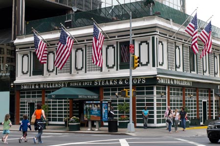 6月11日,第11屆“巴菲特慈善午餐”拍賣以263萬美元落槌,刷新2008年中國投資人趙丹陽創(chuàng)下的211萬美元紀(jì)錄。中標(biāo)者將可邀請7位朋友與巴菲特在曼哈頓Sm ith & W ollensky餐廳共進午餐。拍賣所得將捐給舊金山的格來得慈善基金會。 圖為行人正從美國紐約曼哈頓中城Smith&Wollensky餐廳走過。新華社發(fā)(吳凱翔 攝)