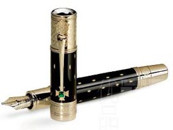 萬寶龍以藝術(shù)贊助人“伊麗莎白一世”4810系列墨水筆,頌贊女皇一生的傳奇:18K金筆嘴的皇冠圖案象征女皇1559年登基時(shí)佩戴的冠冕;焗漆筆桿及筆帽的斑點(diǎn)與女皇登基時(shí)的禮袍設(shè)計(jì)呼應(yīng);筆帽頂鑲象牙色萬寶龍六角白星標(biāo)志,飾以都鐸王朝玫瑰徽章;筆夾的鍍金十字徽章鑲一顆人造拱面綠寶石,與女皇的皇冠上的珠寶十字裝飾相映成輝,是為點(diǎn)睛之筆。